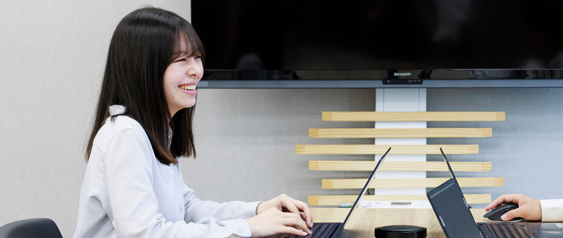 技術部のS.Mさんは、日々システムの開発に向き合いながら、お客様の課題に本質的に応える仕事を追求している。