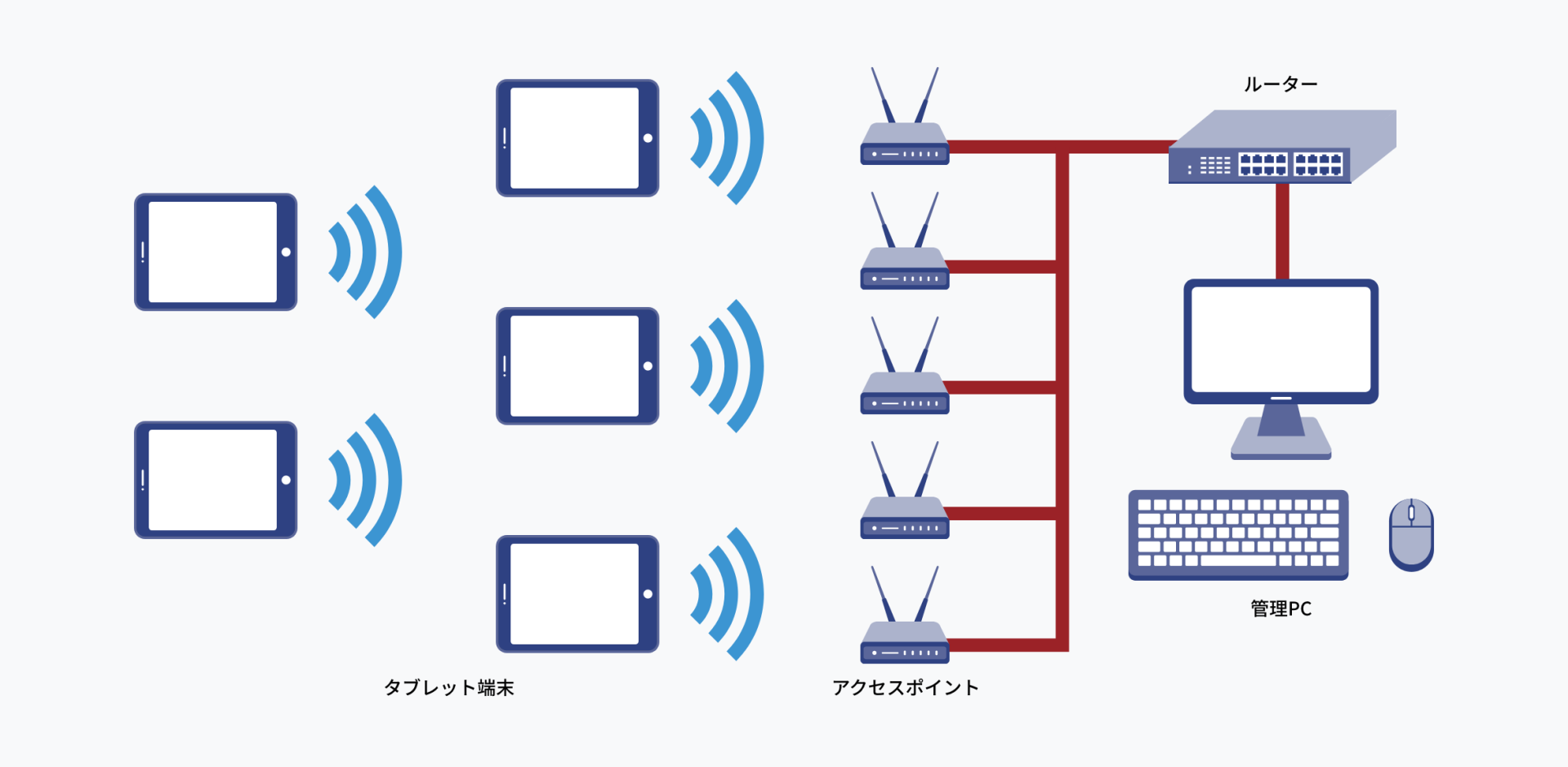新たに記録用の情報端末を導入し、無線LANでネットワークを構築。工場内で検査用のタブレット端末を持ち運び、オンラインで常に情報を更新できるように、工場内にアクセスポイントを複数個設定しました。手順や製品の仕様変更があった場合は、手元の端末でリアルタイムに更新・確認でき、作業を完了した際もカメラで撮影することでそのデータを一括で管理できるようになりました。また、集約された膨大なデータの中から必要なものを検索する際は、使いやすい「メニュー方式」を採用し、画面に設定したメニューバーを順に辿っていくことで見つけられるようにしました。